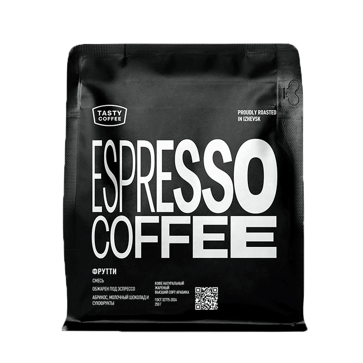 Главная / Продукты / Чай, какао, кофе / Кофе для эспрессо молотый "Фрутти", 250г, Tasty Coffee